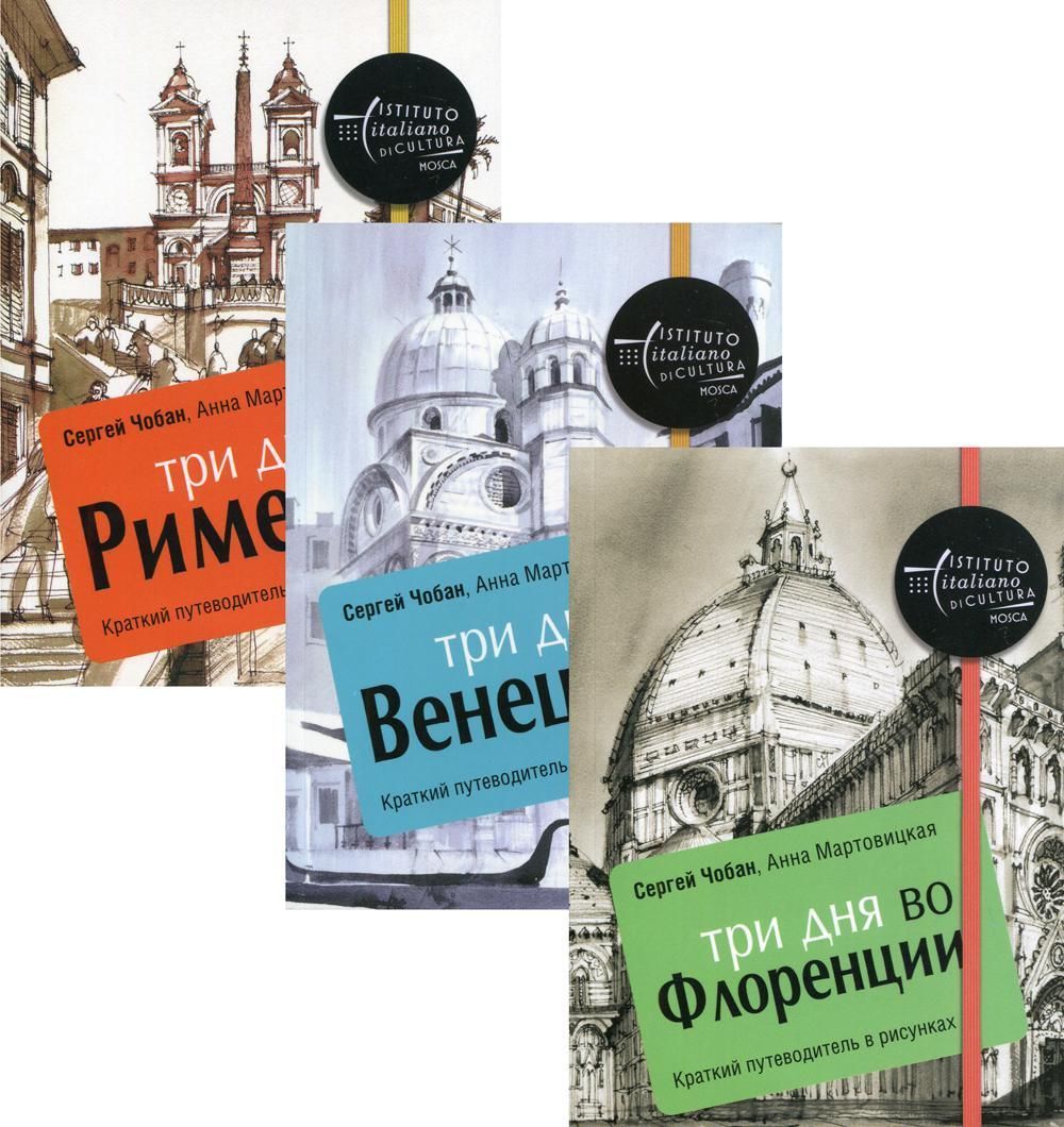 В комплект "Иллюстрированные путеводители по городам Европы" вошли три книги: "Три дня во Флоренции" Собираетесь во Флоренцию на выходные? Наш путеводитель - идеальный помощник для составления плана недолгой, но насыщенной впечатлениями прогулки. В нашем путеводителе вы не найдете фотографий. Фотографии делать вам, дорогие путешественники! Мы же в качестве иллюстраций использовали рисунки архитектора Сергея Чобана, которые подскажут вам, почему, с какой точки и в какое время дня тот или иной объект особенно выразителен и фотогеничен, а возможно, вдохновят на собственные фотографии и рисунки. "Три дня в Венеции" Собираетесь в Венецию на выходные? Наш путеводитель составит вам идеальную компанию. В него вошли три маршрута по десяти наиболее интересным достопримечательностям Венеции. В нашем путеводителе вы не найдете фотографий. Фотографии делать вам, дорогие путешественники!