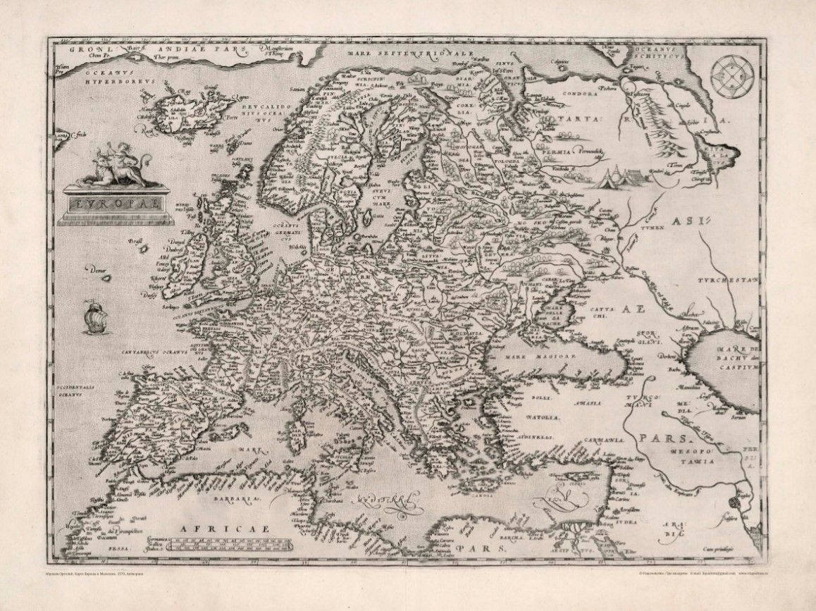 Карта Европы и Московии. 1570. Антверпен. Репринт. 47х61см