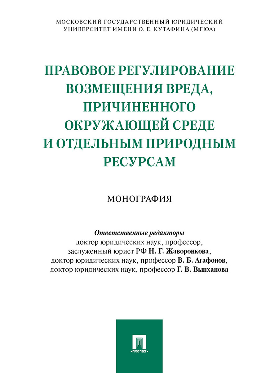 В предлагаемой монографии рассмотрены дискуссионные вопросы возмещения вреда окружающей среде и отдельным природным ресурсам в соответствии с нормами экологического и гражданского законодательства: дана оценка возможности применения к таким отношениям принципа генерального деликта, обоснована необходимость разделения деликтной ответственности за экологическое правонарушение и правовых мер восстановительного характера, платы в случае негативного воздействия на окружающую среду хозяйственной и иной деятельности, не являющейся неправомерной, применение которых требует учета риск-ориентированного подхода, исследован понятийный аппарат в сфере возмещения вреда, причиненного окружающей среде, международное и зарубежное законодательство, материалы правоприменительной и судебно-арбитражной практики, дана комплексная оценка эффективности действующего