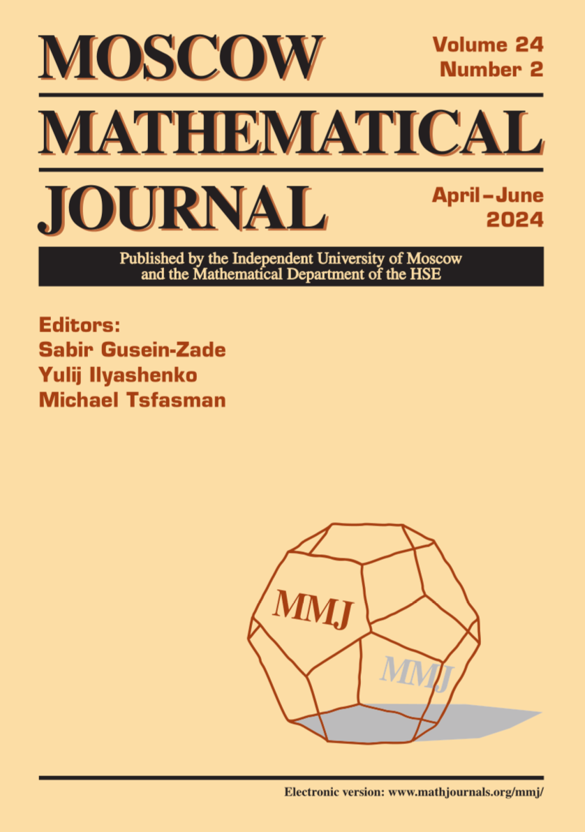 The Moscow Mathematical Journal (MMJ) is an international quarterly published (paper and electronic) by the Independent University of Moscow, together with the Mathematical Department of the Higher School of Econonics and Moscow Center for Continuous Mathematical Education, and distributed worldwide by the American Mathematical Society. MMJ presents highest quality research and research-expository papers in mathematics from all over the world. Its purpose is to bring together different branches of our science and to achieve the broadest possible outlook on mathematics, characteristic of the Moscow mathematical school in general and of the Independent University of Moscow in particular.