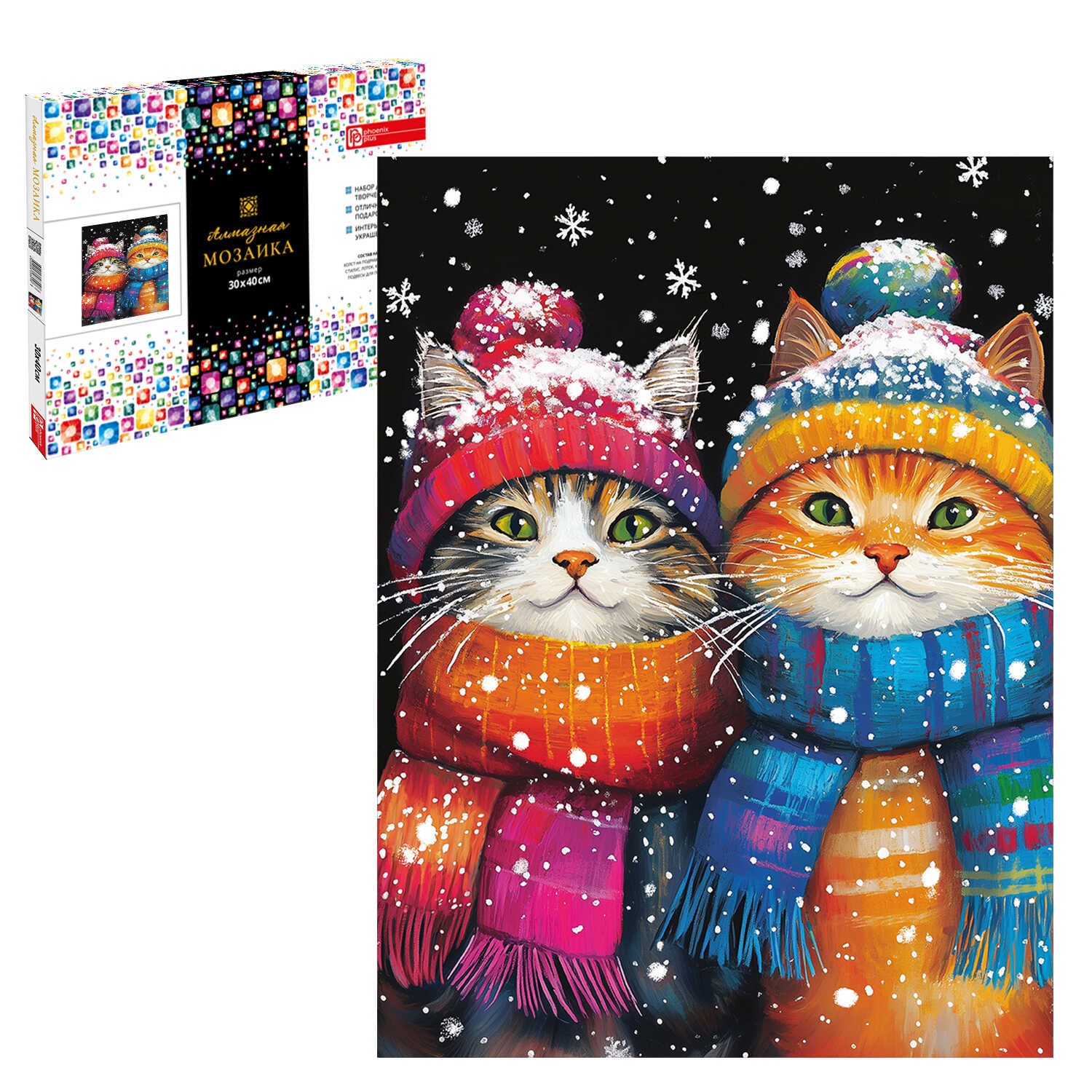 Алмазная мозаика (набор для творчества) арт. 70854 / 25 СНЕЖНЫЕ КОТЫ, размер: 30x40 см, (27 цветов страз, холст на подрамнике с напечатанной картиной, покрытый клеевым слоем и защитной пленкой, пакеты со стразами, стилус, лоток для страз, силикон для страз, клей, подвесы для подрамника, пинцет металлический, схема, дополнительные пакеты с zip-молнией, стикеры для нумерации zip-пакетов в комплекте, форма страз: квадратная, тип выкладки: полная, картонная коробка)