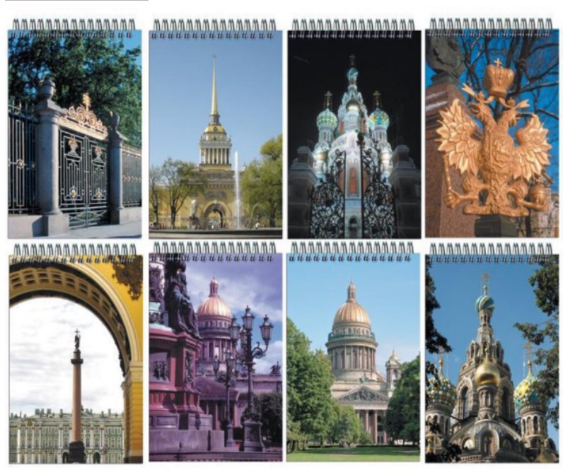 - Блокнот А7; 40л. арт. 22с12; клетка Виды С-Пб. гребень сверху
