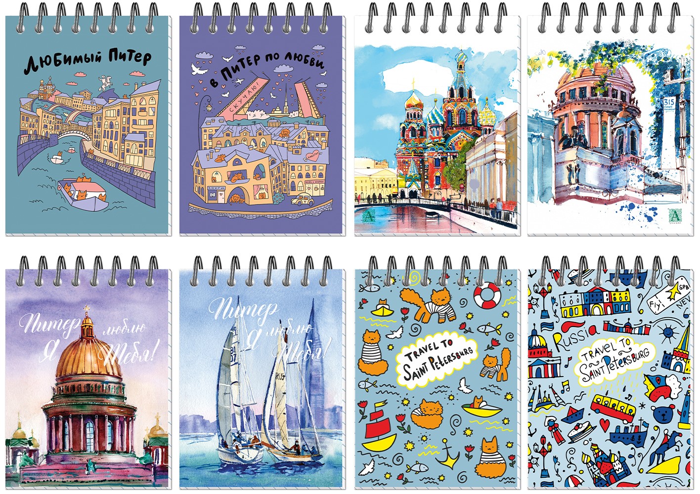 - Блокнот А7; 40л. арт. 3476; Питер на металлическом гребне