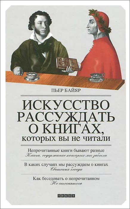 Пьер Байяр (род. в 1954 г.) — автор почти двух десятков книг, специалист по литературоведческому эпатажу и знаток психоанализа, преподаватель университета Париж VIII. Его «Искусство рассуждать о книгах, которых вы не читали» — это весьма неожиданные соображения о чтении. Вместо стандартной пары «читал-не читал» — он выделяет несколько типов общения человека с книгой: ее можно пролистать, узнать содержание от других, а иногда, наоборот, хорошо прочитанную книгу можно начисто забыть. Пьер Байяр разбирает ситуации, в которых нам приходится говорить о непрочитанных книгах, и предлагает способы выйти из положения с честью. Он убедительно доказывает, что, вопреки распространенному мнению, вполне можно вести увлекательную беседу о книге, которой вы не читали, в том числе с человеком, который ее тоже не читал.