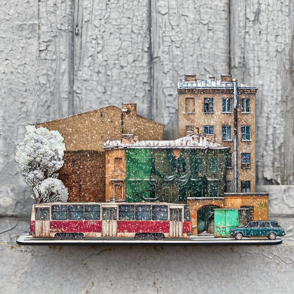 - Диорама сувенирная "Тот самый Петербург. Зимний с трамваем"П3зим.