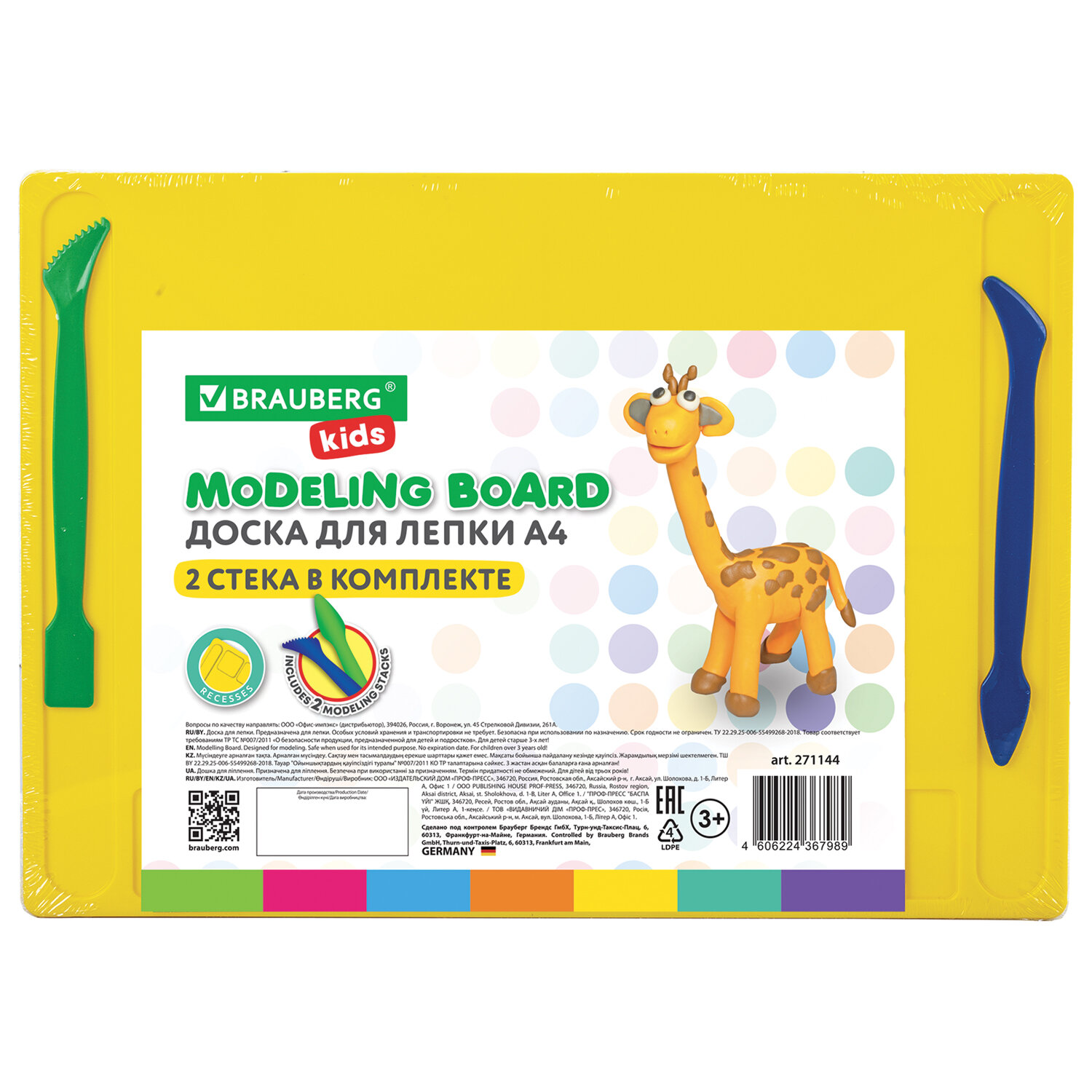 - Доска для лепки с отделениями и 2 стеками А4, 280х200 мм, ассорти, BRAUBERG KIDS, 271144/8
