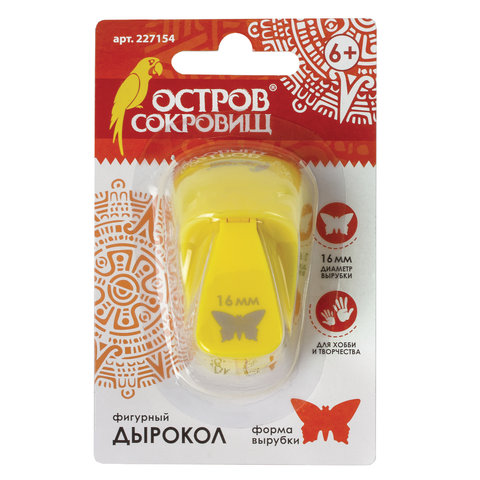 - Дырокол фигурный Бабочка арт. 227154; ОСТРОВ СОКРОВИЩ диаметр вырезной фигуры 16 мм