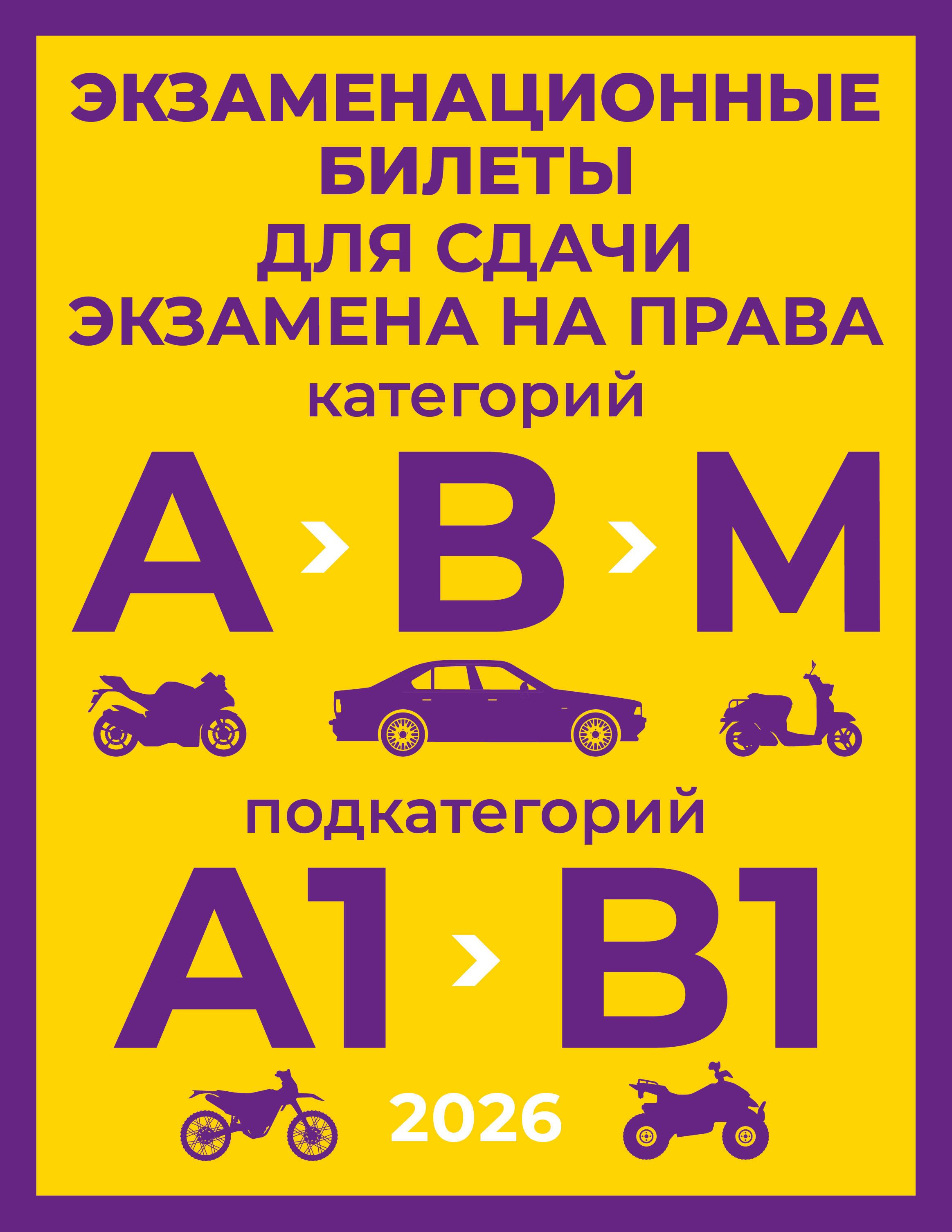 - Экзаменационные билеты для сдачи экзамена на права категорий А, В и М, подкатегорий А1 и В1 на 2026