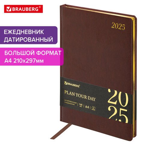 - Ежедневник 2025 А4; 160 л. арт. 115736; срез-золтой Iguana коричневый BRAUB