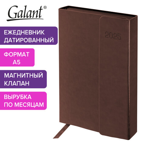 Ежедневник 2025 А5; 160 л. арт. 115709; срез-коричневый вырубка магнитный клапан Magnetic коричневый