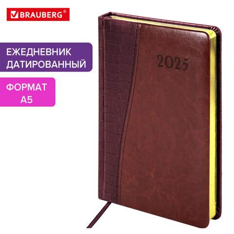 - Ежедневник 2025; А5; 160 л. арт. 115769; срез-золотой Cayman коричневый BRAUB