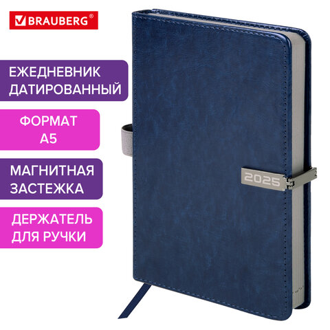 Ежедневник 2025 А5; 160 л. арт. 115901; срез-серый; магнитный клапан Inspiration синий BRAUB