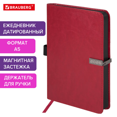 - Ежедневник 2025 А5; 160 л. арт. 115902; срез-черный; магнитный клапан Inspiration красный BRAUB