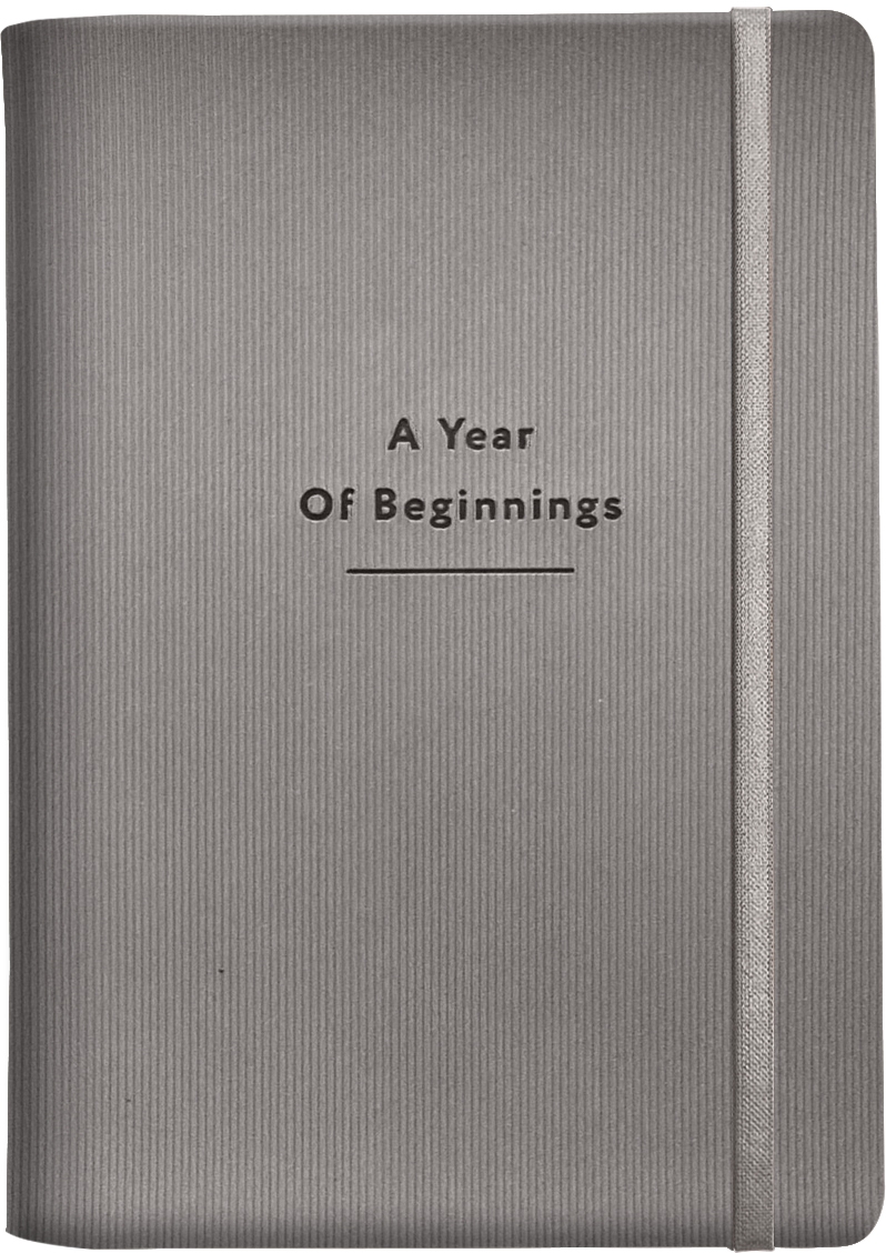 Обложка - гибкая, рифленный кожзам, цвет - серый. Блок - датированный, 352 стр., прямые уголки, 2 ляссе, бумага: слоновая кость, прямые уголки, 70 г/м2, печать 1+1. Особенности: блинтовое тиснение, резинка в цвет материала.
