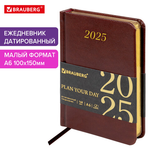 - Ежедневник 2025 А6; 160 л. арт. 115743; срез-золотой Iguana коричневый BRAUB