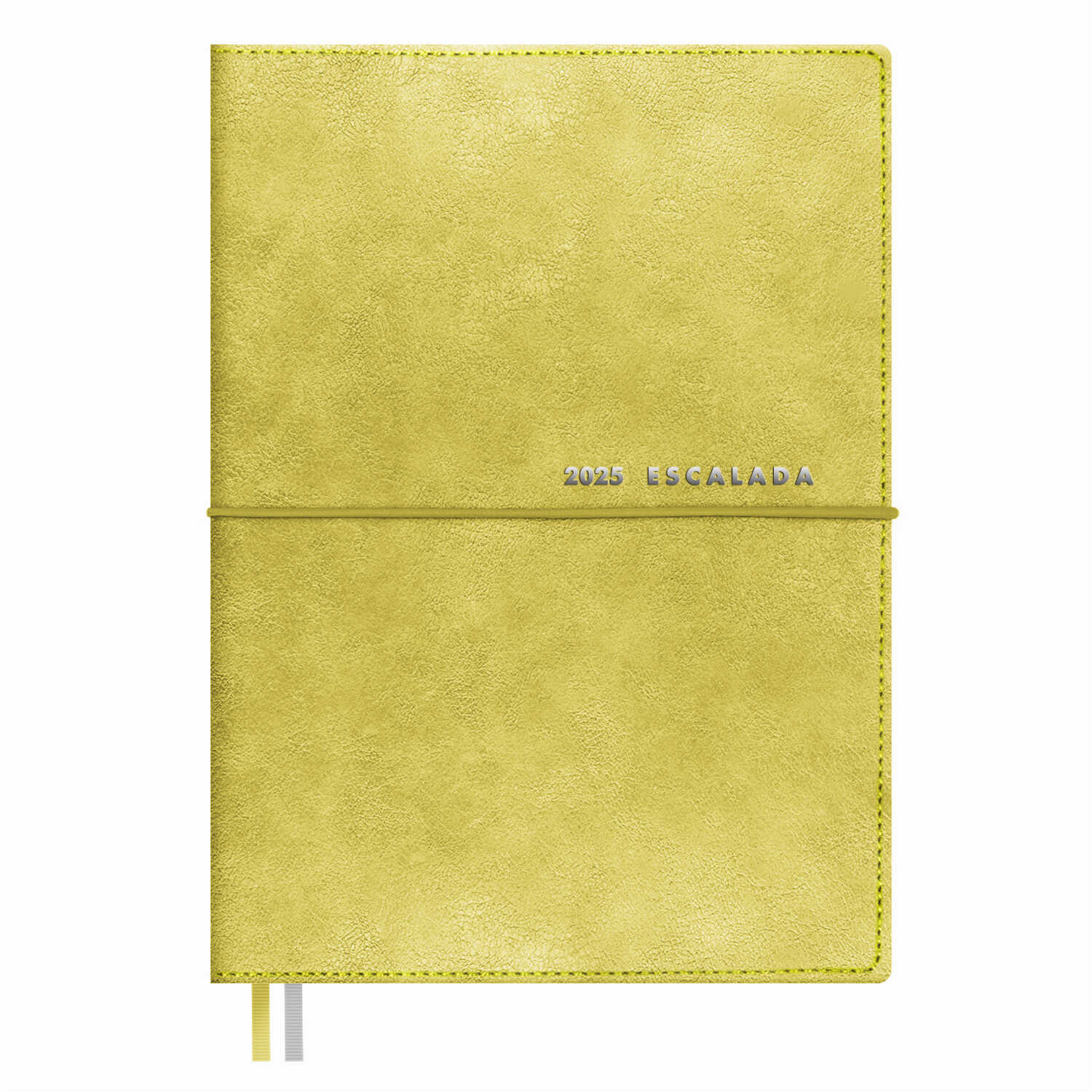 Ежедневник датированный 2025 ESCALADA, А6+, 176 л., арт. 67060/ 20 ШЕВРЕТ ОЛИВКОВЫЙ (кожзам: 128х176 мм, мягкий переплёт, запаянный край, съёмная обложка, материал обложки: искусственная кожа "Шеврет"; декор: тиснение фольгой; способ крепления блока: вставной блок, ниткошвейный; вн. блок: 176 л., кремовый офсет 70 г/м², печать в две краски (линия), справочный материал: есть; перфорация углов блока: есть; закладка/-и: два ляссе; каптал: нет; форзац: печать пантоном; особенности: застёжка-резинка, закладка пластиковая, украшенная тиснением фольгой, в комплекте; персонализация возможна: да; индивидуальная упаковка: промостикер + ПЭТ-пакет)