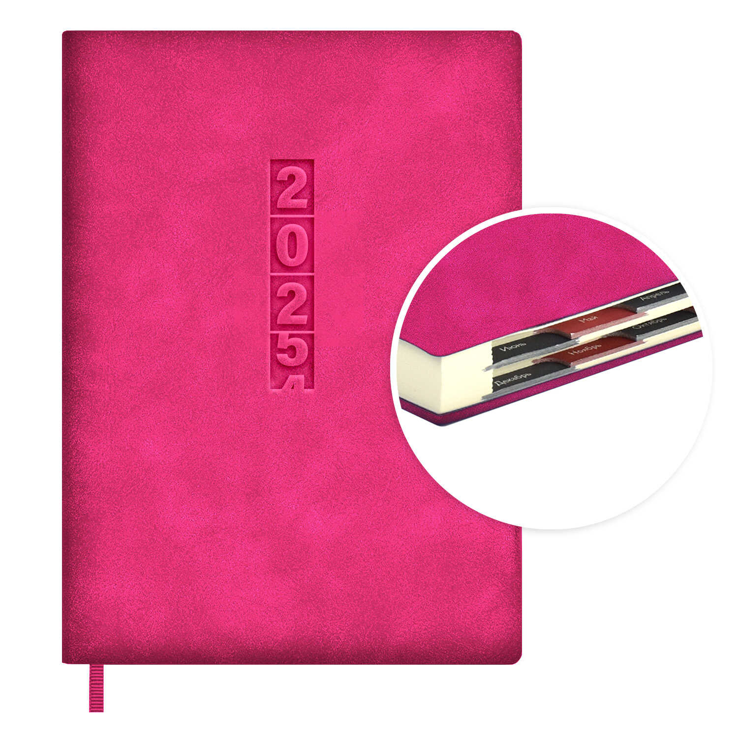 Ежедневник датированный 2025 ESCALADA, #ИЛОН МАСК, А6+, 176 л., арт. 67046/ 20 ТИВОЛИ ГЛОСС МАЛИНОВЫЙ (кожзам: 126х174 мм, мягкий переплёт, запаянный край, материал обложки: искусственная кожа "Тиволи глосс"; декор: блинтовое тиснение; способ крепления блока: ниткошвейный; вн. блок: 176 л., кремовый офсет 70 г/м², печать в две краски (линия), справочный материал: есть; перфорация углов блока: есть; закладка/-и: одно ляссе; каптал: есть; форзац: печать пантоном; особенности: вырубка блока по месяцам, в блоке использованы мотивирующие высказывания одного из самых активных в соцсетях миллиардеров, изобретателя, основателя и гендиректора электромобильной компании Tesla и космического гиганта SpaceX – Илона Маска; персонализация возможна: да; индивидуальная упаковка: промостикер + ПЭТ-пакет)