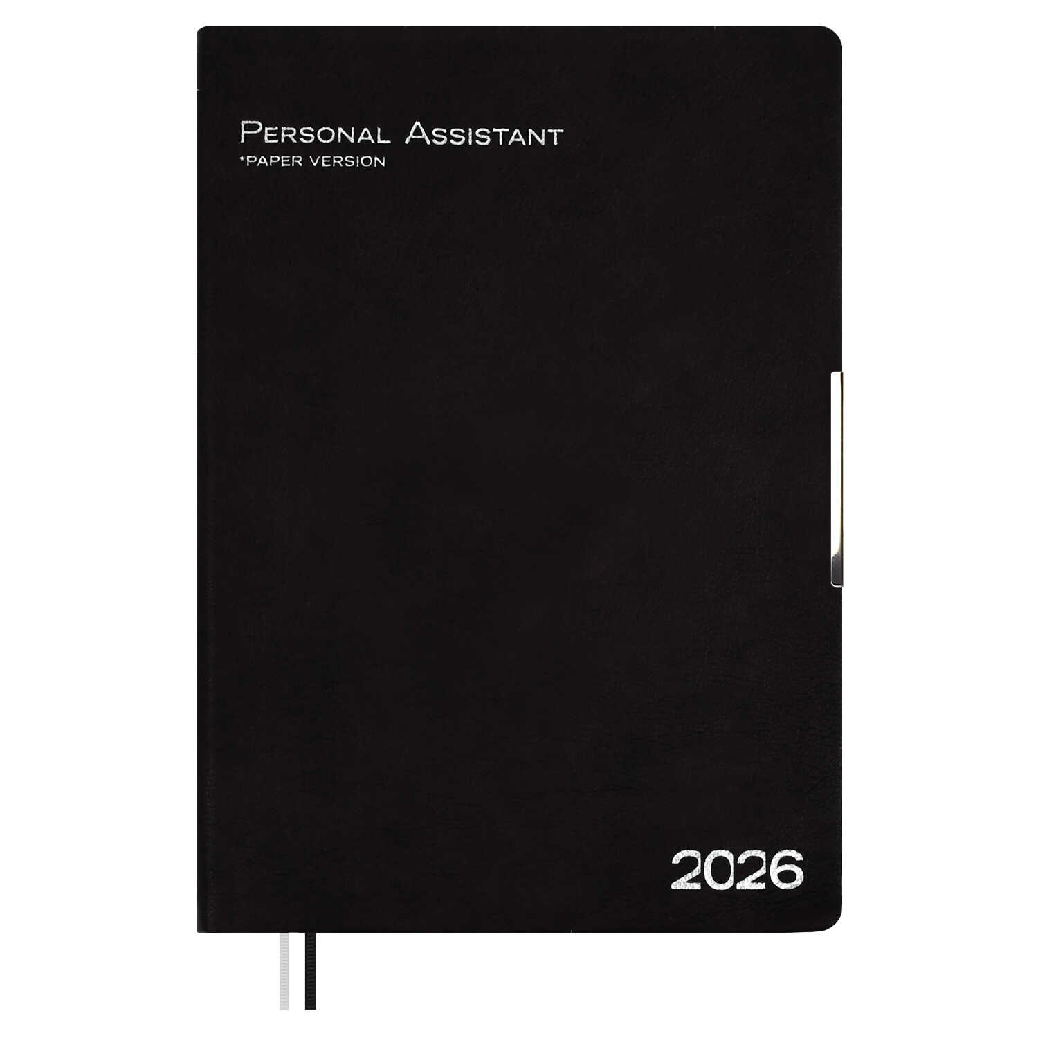 Ежедневник датированный 2026 ESCALADA, А4, 120 л., арт. 70205/ 10 ШЕВРЕТ ГЛОСС ЧЁРНЫЙ (кожзам: 210х297 мм, мягкий переплёт, запаянный край, материал обложки: искусственная кожа "Шеврет глосс"; декор: тиснение фольгой, металлический шильд по краю обложки; способ крепления блока: ниткошвейный; вн. блок: 120 л., белый офсет 80 г/м², печать в две краски (линия), справочный материал: есть; перфорация углов блока: нет; закладка/-и: два ляссе; каптал: есть; форзац: печать пантоном; персонализация возможна: да; индивидуальная упаковка: промостикер + ПЭТ-пакет)