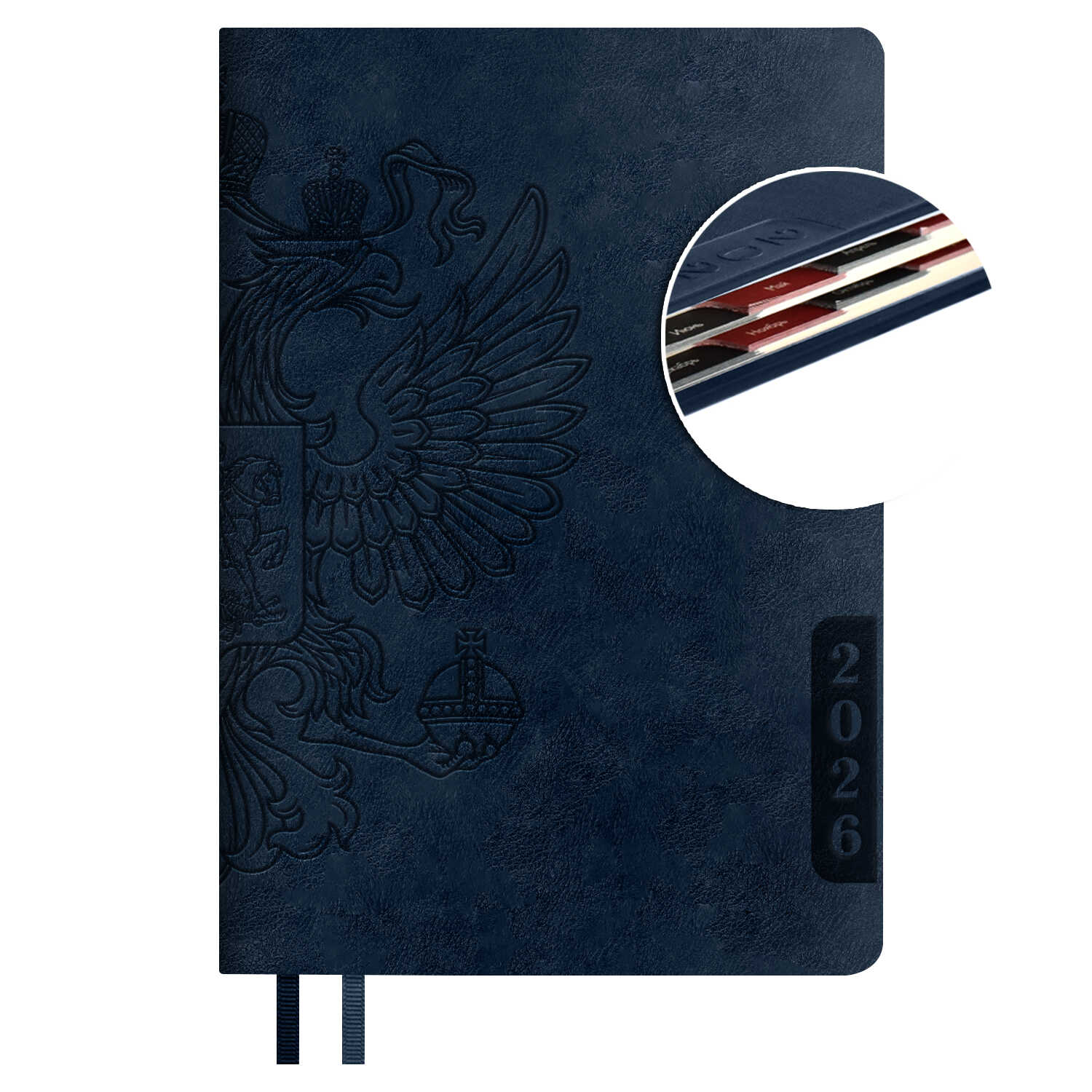 - Ежедневник 2026 А5; 176л. Герб арт. 70247; Синий, Феникс+; вырубка блока по месяцам, тиснение блинт