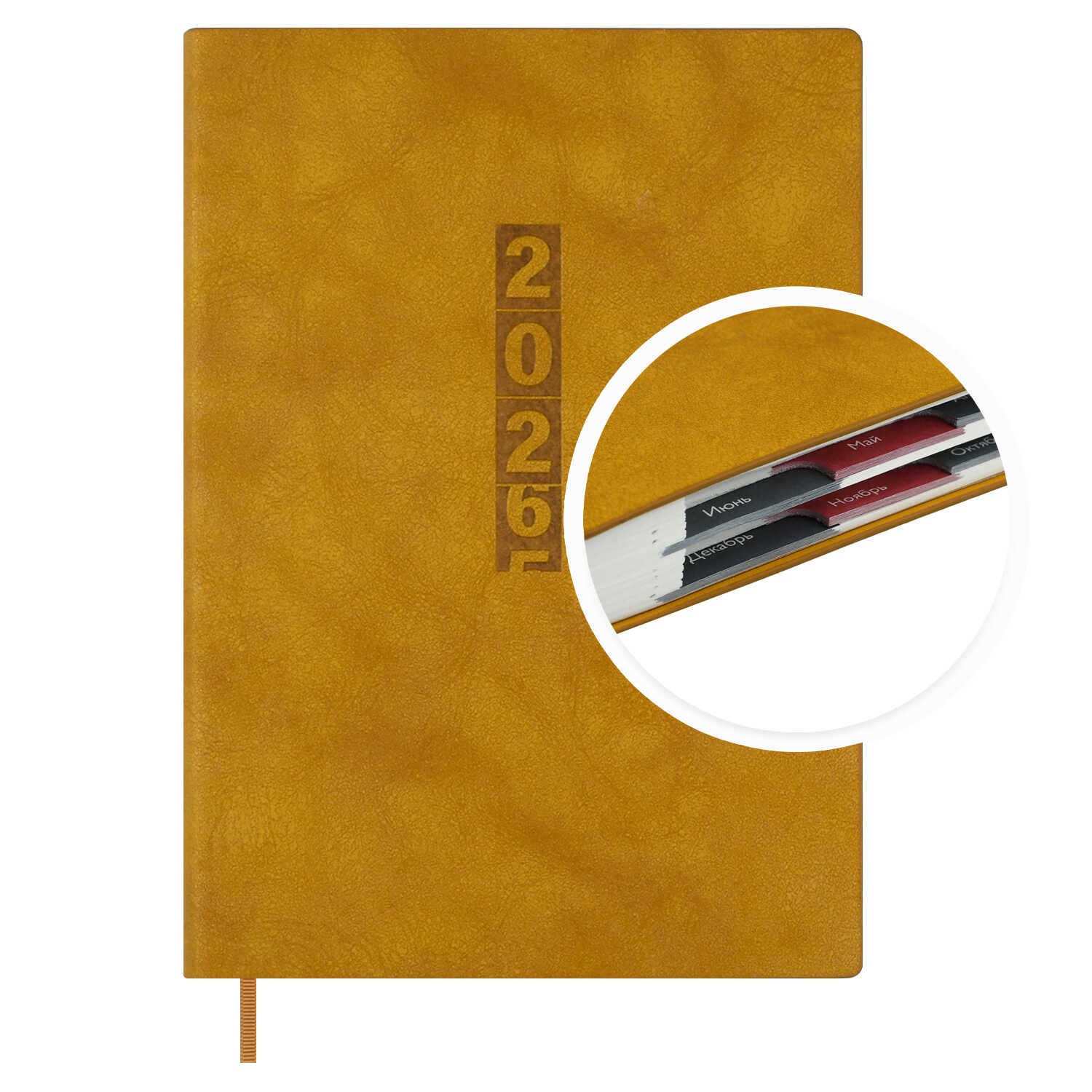Ежедневник датированный 2026 ESCALADA, #ДУМАЙ КАК МИЛЛИАРДЕР, А6+, 176 л., арт. 70300/ 20 ТИВОЛИ ГЛОСС ГОРЧИЧНЫЙ (кожзам: 126х174 мм, мягкий переплёт, запаянный край, материал обложки: искусственная кожа "Тиволи глосс"; декор: блинтовое тиснение; способ крепления блока: ниткошвейный; вн. блок: 176 л., кремовый офсет 70 г/м², печать в две краски (линия), справочный материал: есть; перфорация углов блока: есть; закладка/-и: одно ляссе; каптал: есть; форзац: печать пантоном; особенности: в блоке использованы мотивирующие высказывания из книги "Думай как миллиардер", помогающие сформировать правильное отношение к финансам, профессиональной деятельности, своим способностям и к жизни в целом, вырубка блока по месяцам; персонализация возможна: да; индивидуальная упаковка: промостикер + ПЭТ-пакет)
