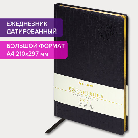 - Ежедневник дат. 2024 А4 арт. 114774; 210х297 мм BRAUBERG Comodoпод кожу черный