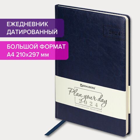 - Ежедневник дат. 2024 А4 арт. 114779; 210х297 мм BRAUBERG Imperial под кожу синий