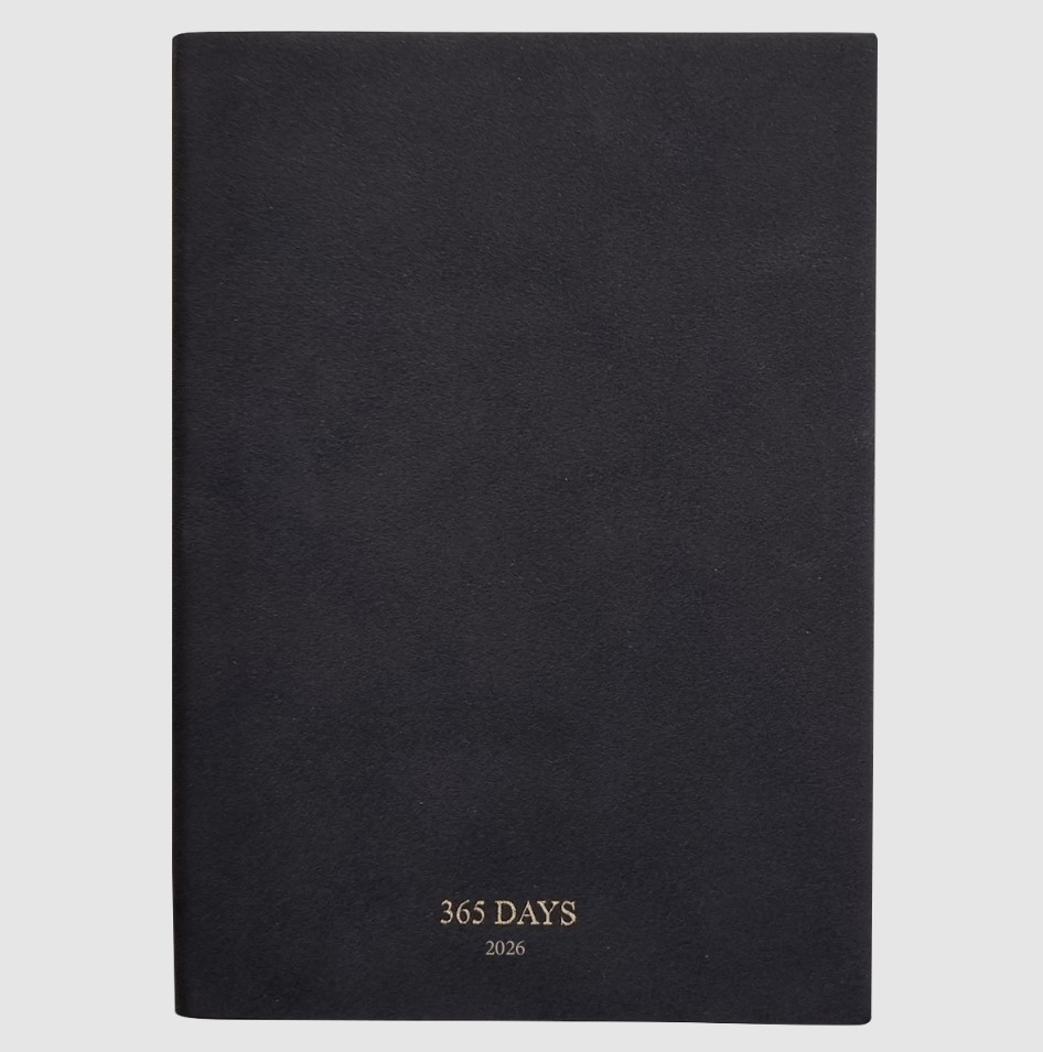 Обложка - мягкая, высококачественная искусственная замша, прямые уголки, цвет - черный. Блок - датированный, 352 стр., 2 ляссе, форзац - печать 1+0, информационный блок, бумага: слоновая кость, прямые уголки, кармашек, 70 г/м2, печать 1+1. Особенности: декоративное тиснение, прокрас обреза блока в цвет обложки.