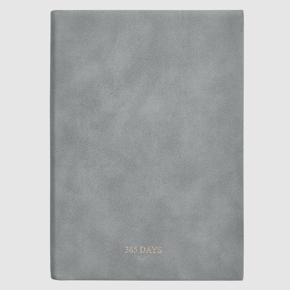 Обложка - мягкая, высококачественная искусственная замша, прямые уголки, цвет - серый. Блок - датированный, 352 стр., 2 ляссе, форзац - печать 1+0, информационный блок, бумага: слоновая кость, прямые уголки, кармашек, 70 г/м2, печать 1+1. Особенности: декоративное тиснение, прокрас обреза блока в цвет обложки.