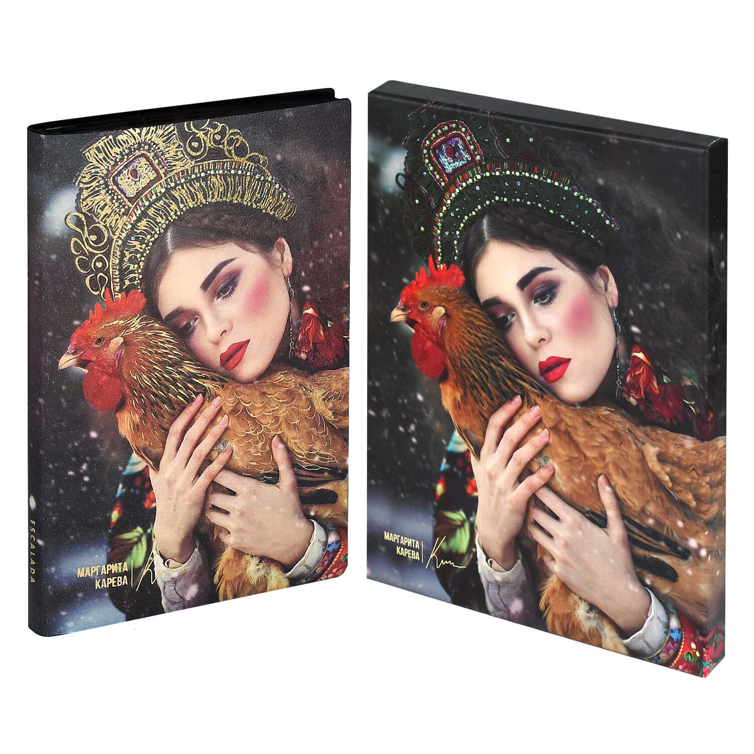 Ежедневник недатированный ESCALADA, #МАРГАРИТА КАРЕВА, А5, 120 л., арт. 70662/ 10 ЗОЛОТОЙ ПЕТУШОК (кожзам: 146x211 мм, мягкий переплёт, запаянный край, материал обложки: искусственная кожа "Наппа"; способ крепления блока: ниткошвейный; декор: печать полноцветная, тиснение фольгой; вн. блок: 120 л., кремовый офсет 70 г/м², печать в одну краску (линия), справочный материал: есть; перфорация углов блока: нет; отделка среза: окрашивание пантоном; закладка/-и: одно ляссе, каптал: есть; форзац: печать пантоном, особенности: на обложке ежедневника использованы чарующие и невероятно притягательные работы фотохудожницы мирового уровня, чьи фотографии в стиле фэнтези попали на обложку модного журнала Runway и страницы The Times, - Маргариты Каревой; персонализация возможна: нет; индивидуальная упаковка: подарочная картонная коробка + ПЭТ-пакет)