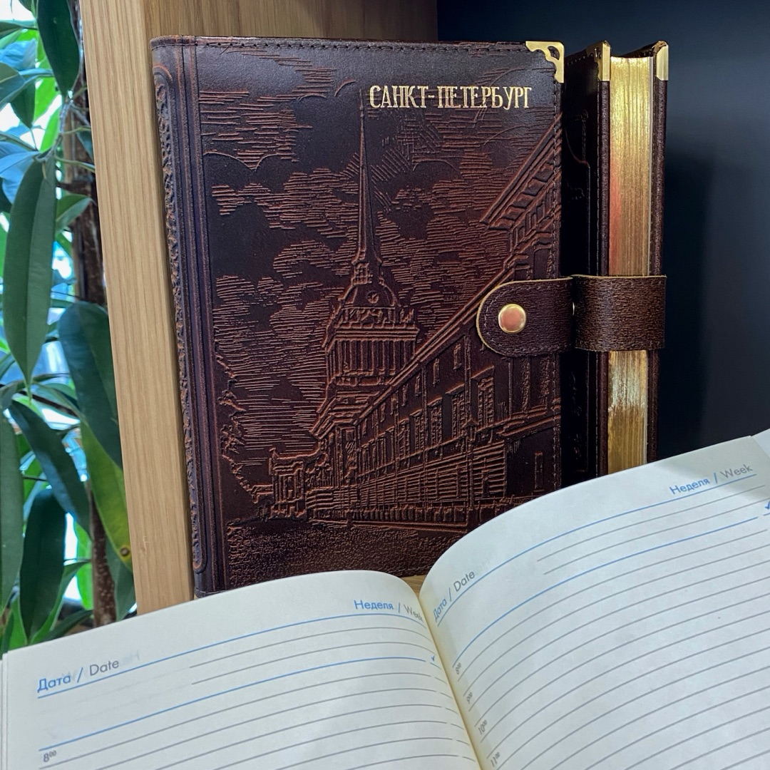 Кожаный ежедневник с золотым срезом подчеркнет ваш статус и станет незаменимым помощником в делах. Достойный подарок на деловой встрече.