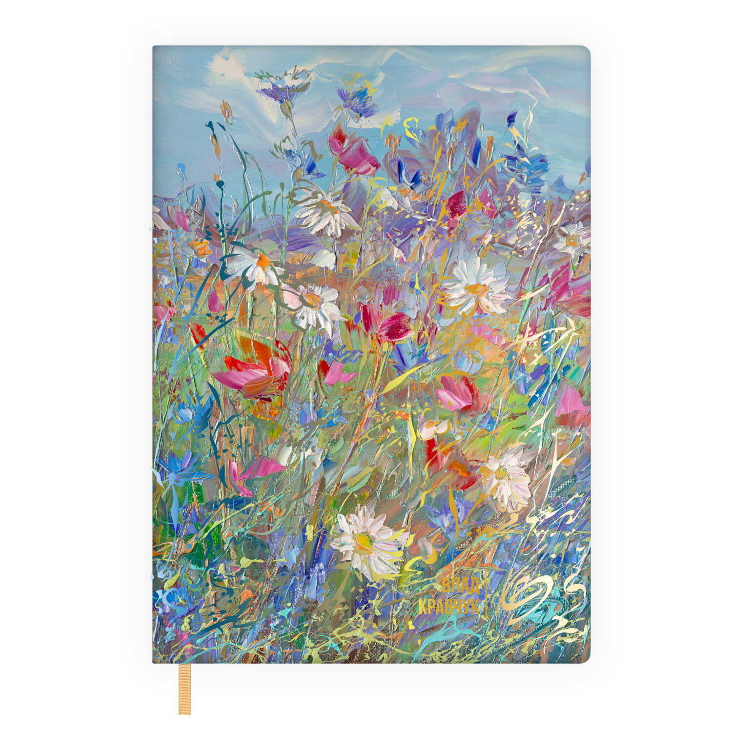 Ежедневник недатированный ESCALADA, #ВЛАД КРАВЧУК, А6+, 120 л., арт. 70697/ 20 ПОЛЕВЫЕ ЦВЕТЫ (кожзам: 126х174 мм, мягкий переплёт, запаянный край, материал обложки: искусственная кожа "Наппа"; способ крепления блока: ниткошвейный; декор: печать полноцветная, тиснение фольгой; вн. блок: 120 л., кремовый офсет 70 г/м², печать в одну краску (линия), справочный материал: есть; перфорация углов блока: нет; отделка среза: окрашивание пантоном; закладка/-и: одно ляссе, каптал: есть; форзац: печать пантоном, особенности: на обложке ежедневника использованы живописные работы современного художника, участника многочисленных выставок и крупнейших арт-салонов России и за рубежом, члена Творческого союза художников России и Международного художественного фонда – Влада Кравчука; персонализация возможна: нет; индивидуальная упаковка: промостикер + ПЭТ-пакет)