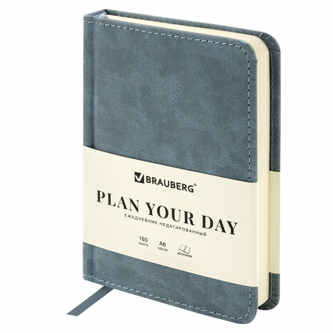 - Ежедневник н/дат. А6; 160 л. арт. 113369; срез-кремовый Status серый BRAUB