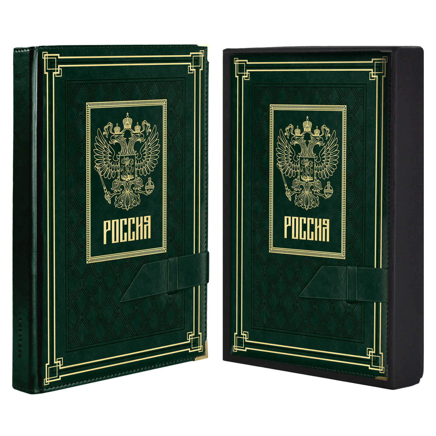 - Ежедневник полудат. А5+; 192 л. ГЕРБ, Зеленый кожзам тв. переплёт линия подар. коробка арт. 63938;