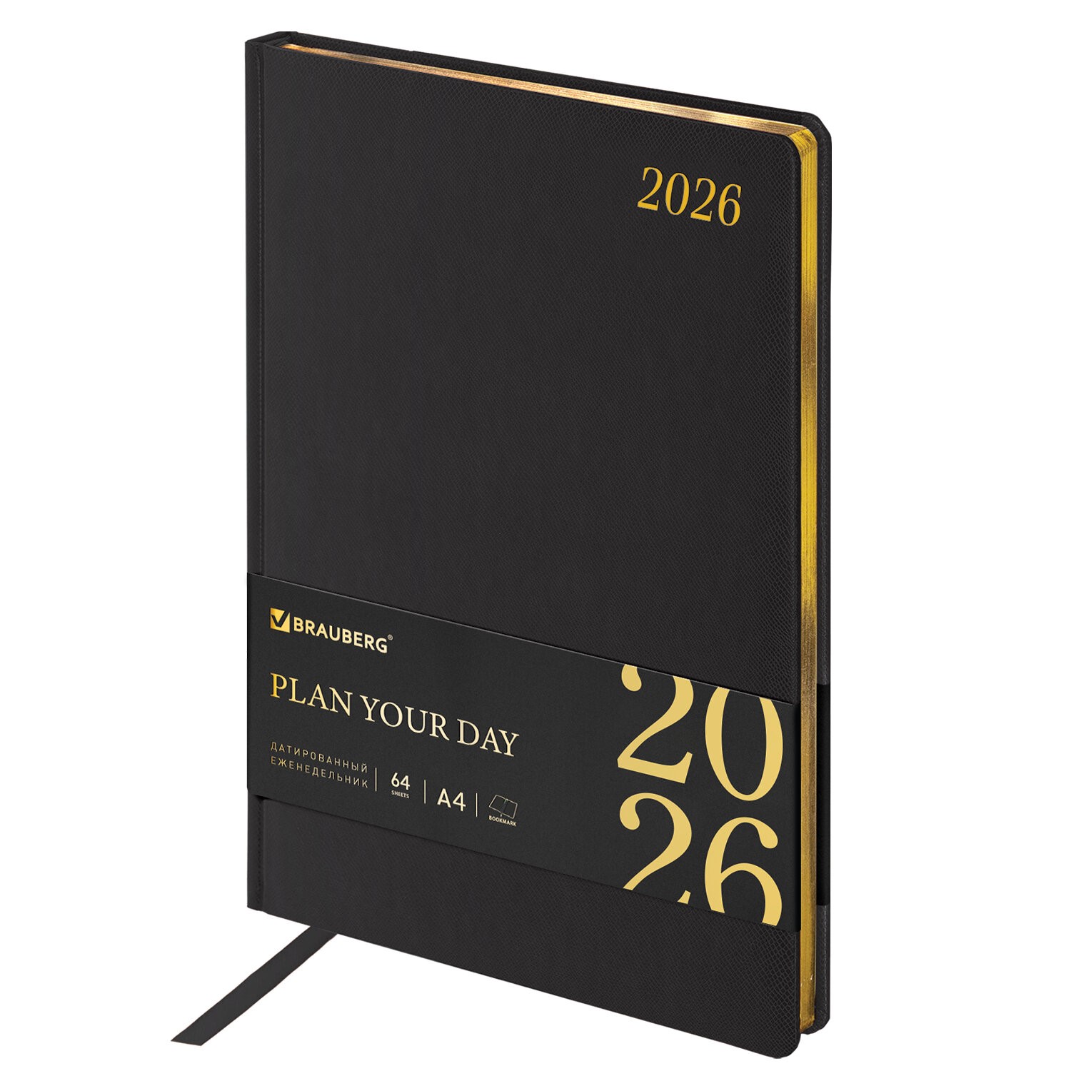 - Еженедельник 2026 А4; 64л. арт. 117153; BRAUBERG Iguana цвет Черный