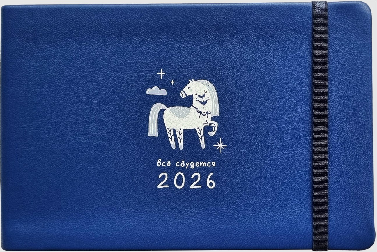 - Еженедельник 2026 А6; 64л. арт. I1817emb/blue; серия Lucky интеграл. переп. с резинкой Infolio