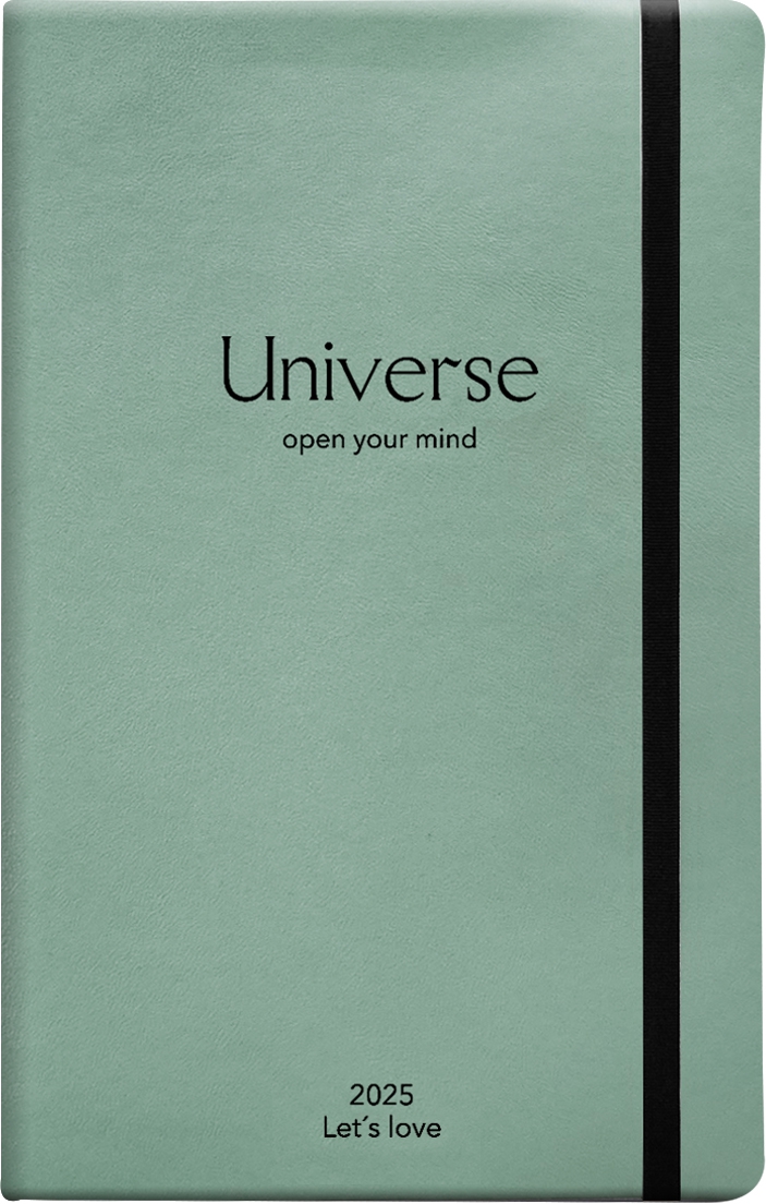 - Еженедельник дат. 2025 А5; 64 л. арт. I1568/mint; Universe Infolio мягкий переплет с резинк.