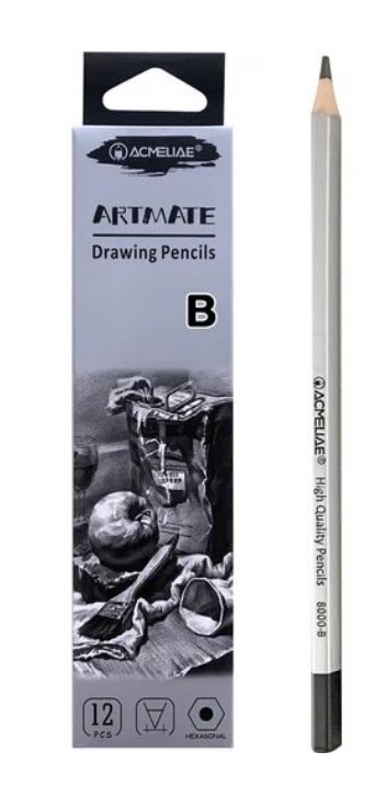 Набор карандашей для графики. Твердость B, диаметр грифеля 2,4 мм. Высокое качество рисования, эскизов, набросков, скетчей, чертежей любой сложности. Профессиональный проклейка грифеля (корпус с грифелем составляет одно целое) предотвращает его поломки при падении и затачивании. Однородный грифель карандаша не царапает бумагу, оставляет четкие яркие линии, не крошится, затачивается до нужной остроты. Шестигранный корпус легкий, удобно лежит в руке, пальцы не скользят – можно работать без усталости. Корпус из высококачественной древесины ровно и аккуратно затачивается стандартными точилками, не меняет цвет, упругость, не трескается. Длина корпуса 175мм. Матовая бархатистая лакированная поверхность, серебристый корпус, запаянный верх. Заточенные. Художественные профессиональные карандаши подойдут для студентов вузов, инженеров, художников, архитекторов, чертежников, дизайнеров, художественных студий, школ, колледжей, школьников.