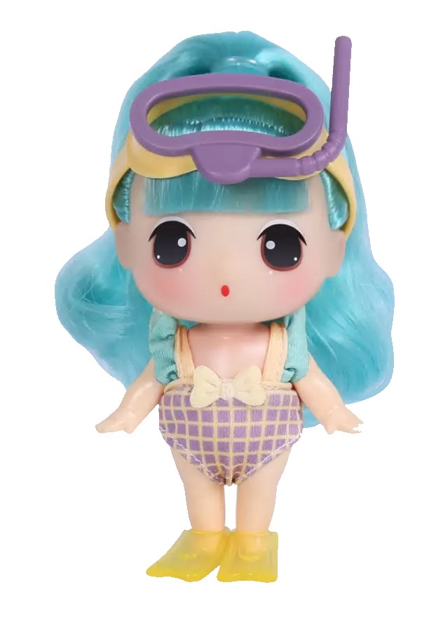 Игрушка для девочки Кукла ростом 11 см - традиционная игрушка кукла малышка для детей любого возраста, для малыша, для школьницы, для девочки в детском саду, для подростка, для девушки. Большие глаза, густые волосы и милое лицо. Подарок для девочки - пупс Пляжница Купальщица с длинными, густыми, кудрявыми волосами, большими глазами, милым личиком, пухлыми щечками, в нарядном купальнике, в шляпке, в шлепках вьетнамках, с необычными аксессуарами - маской для плавания или с очками от солнца. Кукла как новогодний подарок ребенку. Такой вариант подарка на новый год порадует каждую девочку любительницу игр с куклами. Кукла сюрприз — это сюжетно ролевая игрушка. В подарок девочке Летняя Пляжная кукла Фея. В ассортименте не только куклы девочки, но и две куклы мальчика. Кукла мальчик отличный пловец, в стильных купальных шортах, в ластах и в очках для плавания. Игровая кукла может быть украшением интерьера или частью коллекции кукол. Корейская кукла пупс обязательно понравится любителям анимэ. Волосы у куклы пупсика