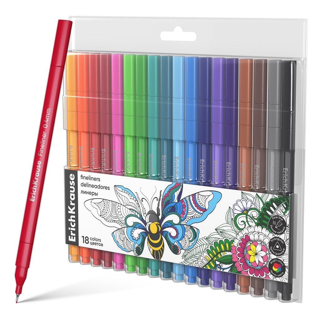 Линеры 18цв. арт. 62950; ErichKrause серия Art Spirit линия 0,4мм. подвес
