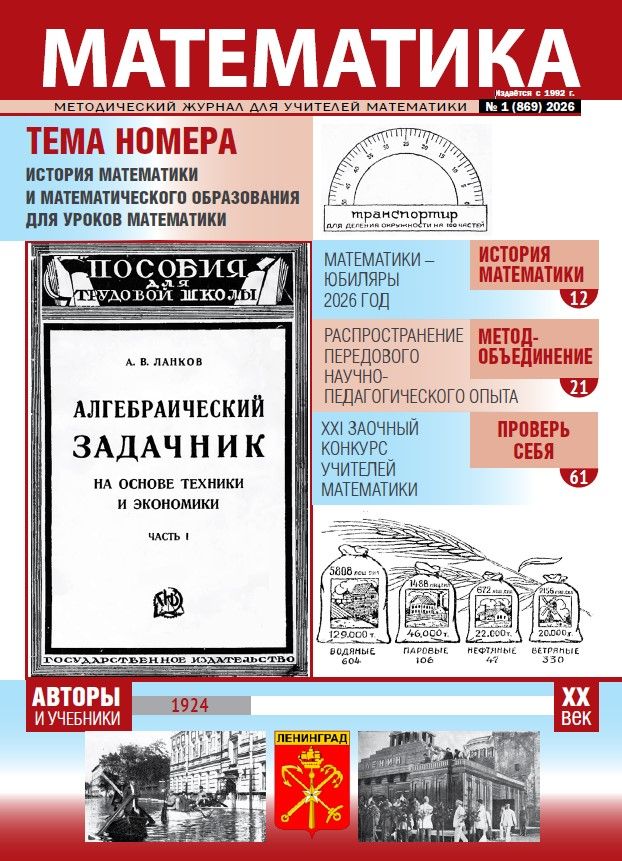 В номерах журнала вы найдете статьи, рассказывающие о работе региональных отделений Российской ассоциации учителей математики, материалы для подготовки к ЕГЭ (базовый и профильный уровни), разборы уроков, материалы для кружка по геометрии, материалы, посвященные международным исследованиям качества математической подготовки, а также многое-многое другое.