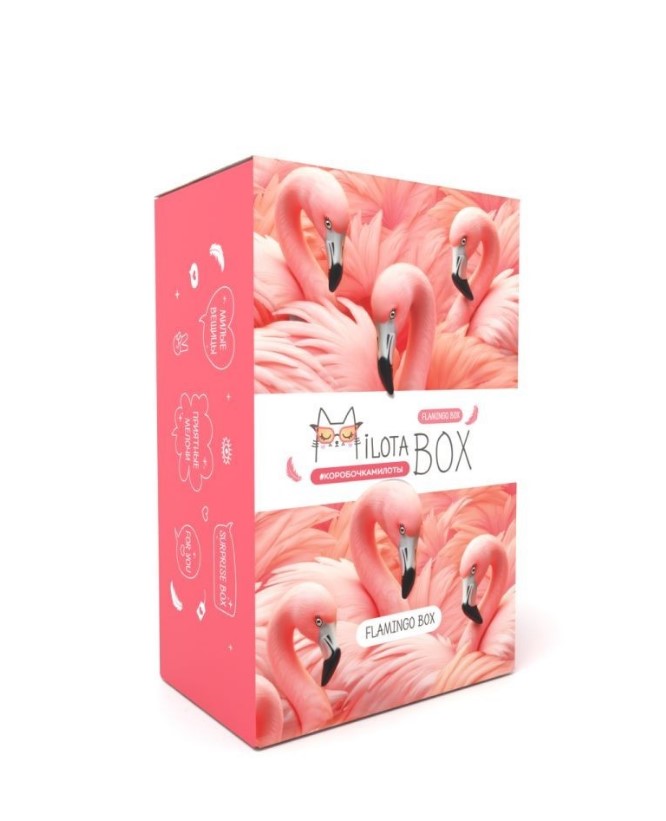 mini "Flamingo" Каждая коробочка милоты наполнена необычными вещицами, которыми будет приятно пользоваться в повседневной жизни: милая канцелярия, уютные товары для дома, стильные аксессуары, предметы для здорового образа жизни и приятные мелочи. Внутри Milota BOX находится до 8 сюрпризов, упакованных в стилизованную подарочную бумагу тишью. Коробочка из плотного, дизайнерского картона. Размер коробочки: 22 х 14 х 9 см. Общий вес: 550 гр.
