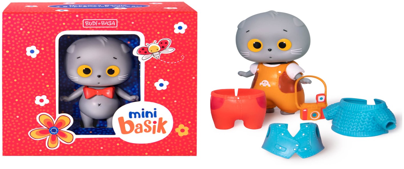 В наборе :Мини Басик, романтичная бабочка, классный комплект из джинсового жилета и ярких штанишек, летний комбинезон, тёплый свитер на случай ветерка и, конечно, фотоаппарат!