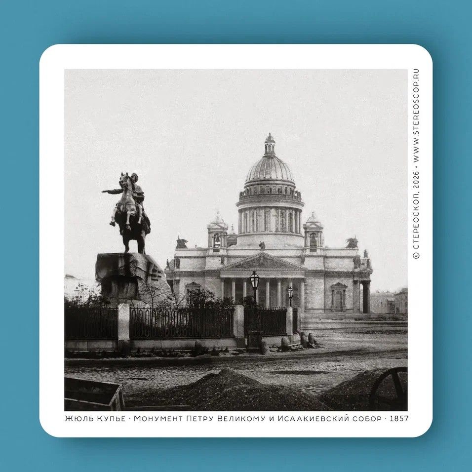 Магнит Монумент Петру Великому и Исаакиевский собор. Жюль Купье. 1857. 95х95мм