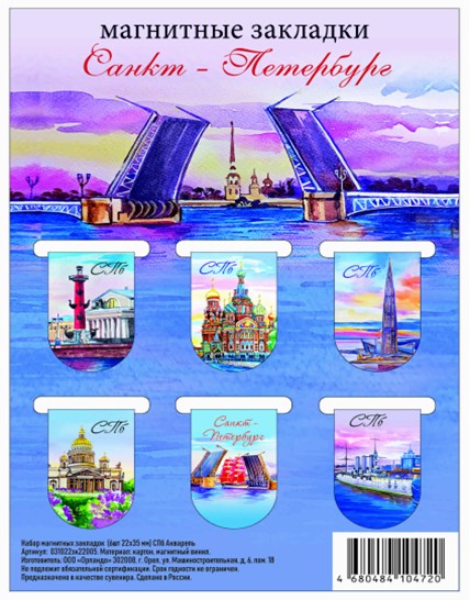 - Набор магнитных закладок 6шт 22х35 мм СПб Акварель