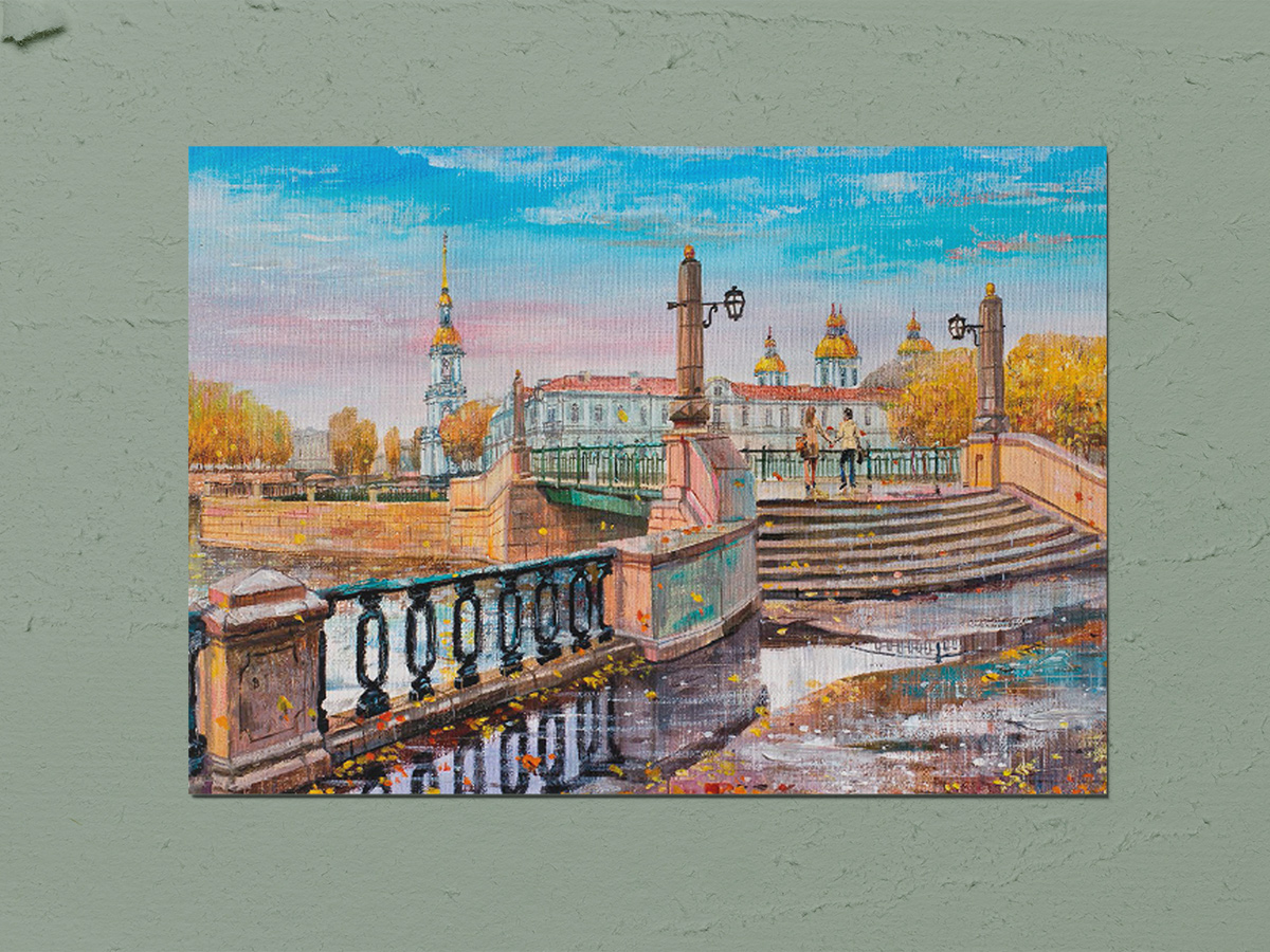 Открытка почтового формата (10х15) с изображением достопримечательностей Санкт-Петербурга. Создана с работ талантливых петербургских художников.