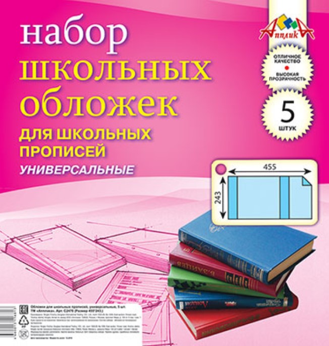 - Обложка д/прописей универ. 5 шт. 243*445 мм арт. С2470; ПВХ Апплика