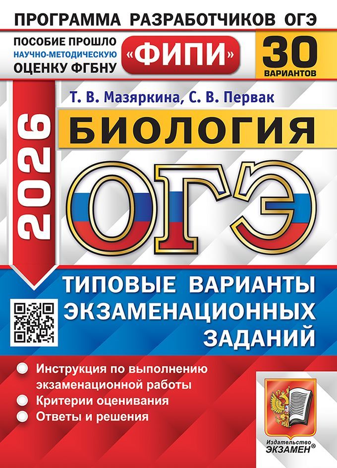 - ОГЭ ФИПИ 2026. 30 ТВЭЗ. БИОЛОГИЯ. 30 ВАРИАНТОВ. ТИПОВЫЕ ВАРИАНТЫ ЭКЗАМЕНАЦИОННЫХ ЗАДАНИЙ