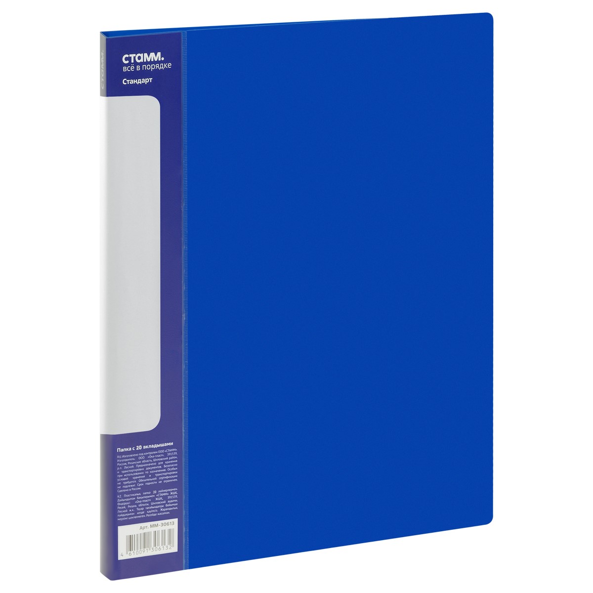 - Папка А4; 14мм 20 вкладышей Синяя арт. ММ-30613; СТАММ серия Стандарт 600мкм.