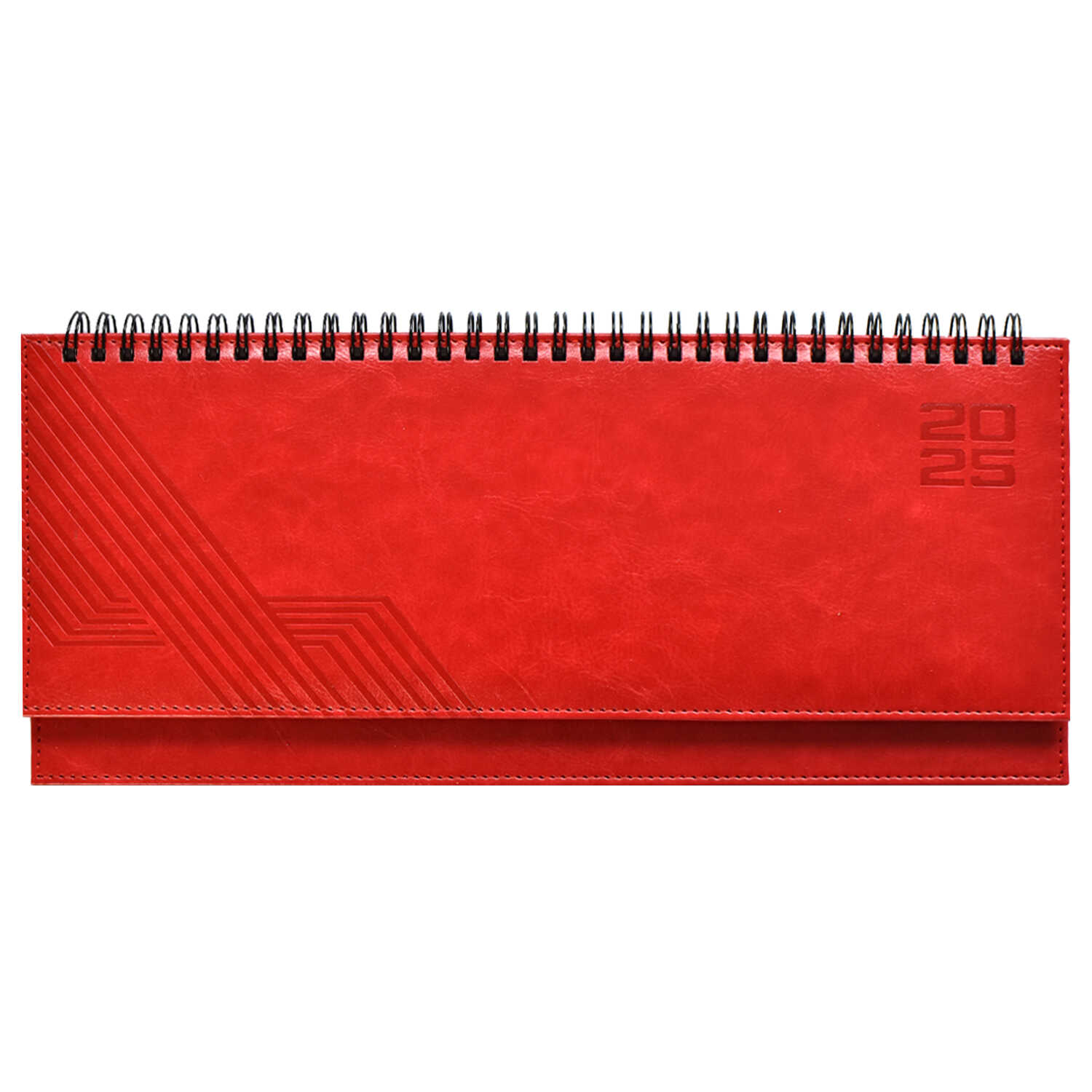 Планинг датированный 2025 ESCALADA, 310x130 мм, 64 л., арт. 67075/ 15 САРИФ КРАСНЫЙ (кожзам: твёрдый переплёт с поролоном, материал обложки: искусственная кожа "Сариф"; декор: блинтовое тиснение; способ крепления блока: евроспираль открытая; вн. блок: 64 л., белый офсет 70 г/м², печать в две краски (линия), справочный материал: есть; перфорация углов блока: нет; форзац: печать пантоном; персонализация возможна: да; индивидуальная упаковка: ПЭТ-пакет)