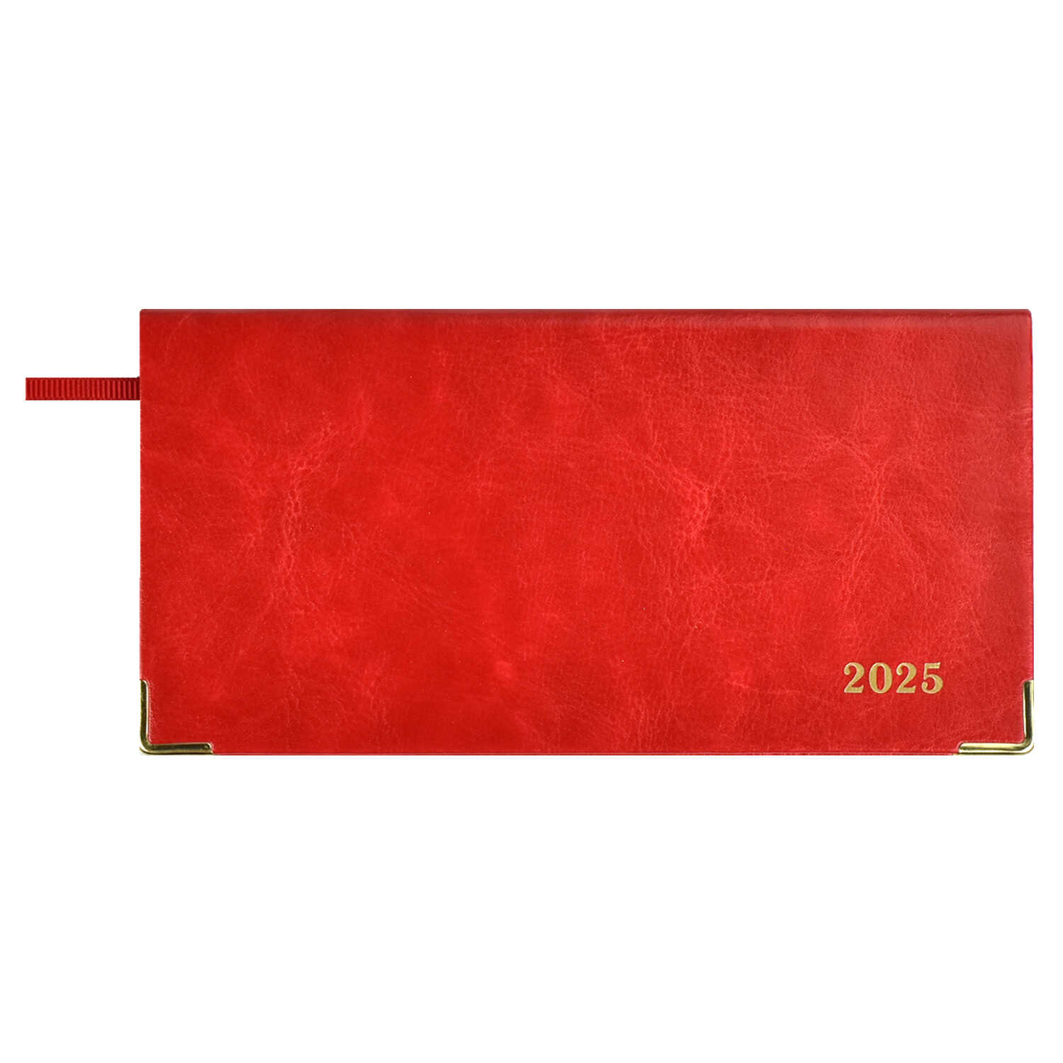 Еженедельник датированный 2025 ESCALADA, 170х88 мм, 64 л., арт. 67139/ 20 САРИФ КРАСНЫЙ (кожзам: интегральный переплёт, материал обложки: искусственная кожа "Сариф"; декор: металлические уголки, тиснение фольгой; способ крепления блока: ниткошвейный; вн. блок: 64 л., белый офсет 70 г/м², печать в две краски (линия), справочный материал: есть; перфорация углов блока: нет; отделка среза: фольгирование; закладка/-и: одно ляссе; каптал: есть; форзац: без печати; персонализация возможна: да; индивидуальная упаковка: ПЭТ-пакет)